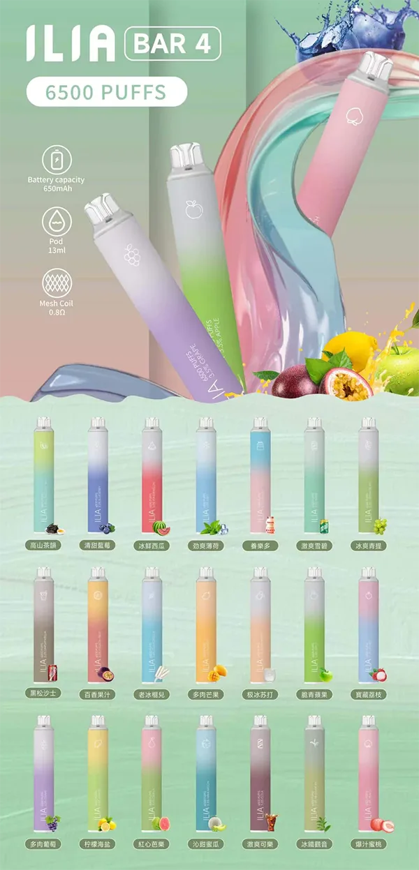 哩亞 ILIA BAR 4 一次性電子煙 ——6500 口暢吸體驗,時尚與實用的完美結合